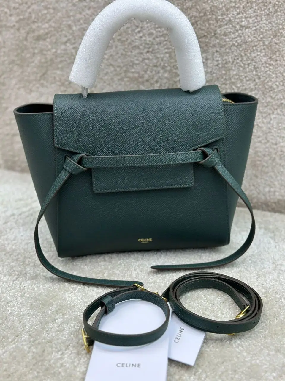 The Celine Belt Bag is a timeless masterpiece of luxury and sophistication, crafted with impeccable attention to detail. Made from premium grained calfskin leather, this iconic bag features the signature “Belt” design with an adjustable strap and sleek buckle closure. Its minimalist yet structured silhouette offers a spacious interior with a zip pocket and two slip pockets, perfect for everyday essentials. The refined “Triomphe” logo adds a touch of understated elegance, making it a must-have for fashion connoisseurs. Available in classic and seasonal hues, the Celine Belt Bag effortlessly elevates any outfit from day to night.