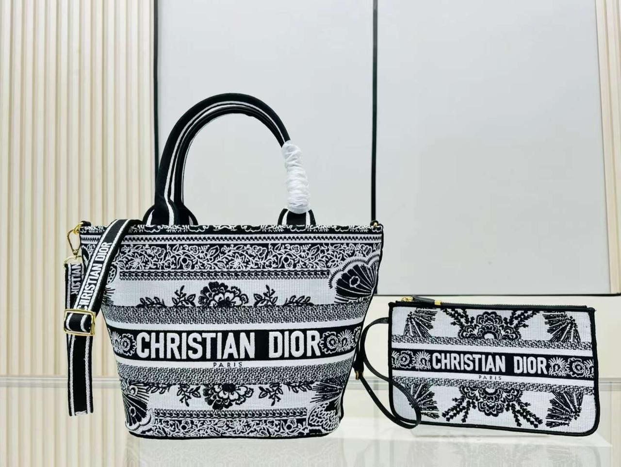New for the Cruise 2024 Collection, the hat basket bag stands out with its elegant silhouette combining functionality and refinement. Fully embroidered with a white and black Butterfly Bandana motif, combining the butterfly and the timeless Bandana pattern in a graphic style, the design is enhanced by a Christian Dior Paris signature on the front. Equipped with a tonal detachable zipped pouch, the spacious bag is completed by an adjustable and removable embroidered strap, allowing it to be carried by hand, worn over the shoulder or crossbody. Christian Dior Paris signature on the front Detachable zipped pouch Embroidered adjustable and removable shoulder strap Dust bag included The size is suitable for a phone and three card holders Strap length: 53.5 – 64 cm / 21 – 25 inches