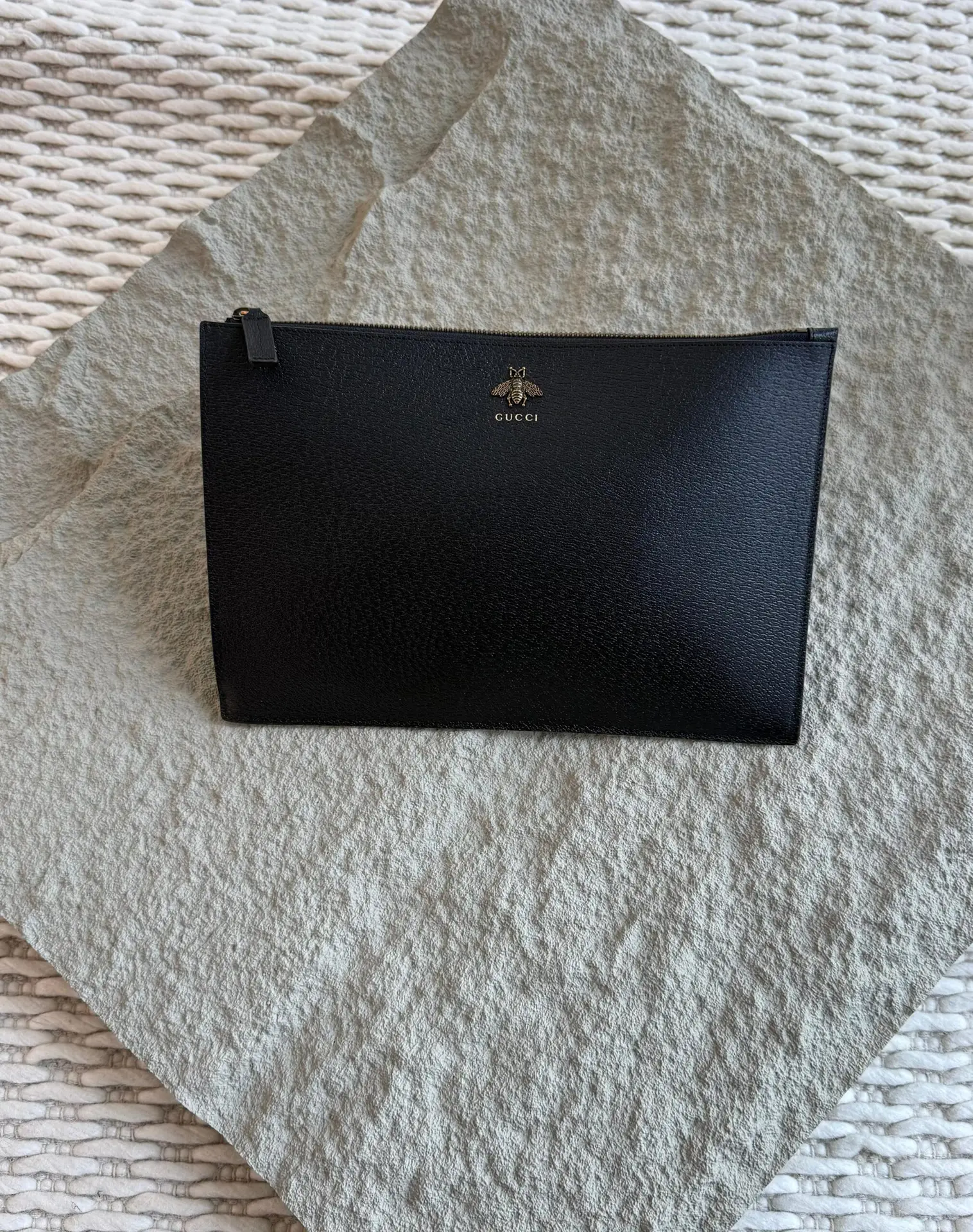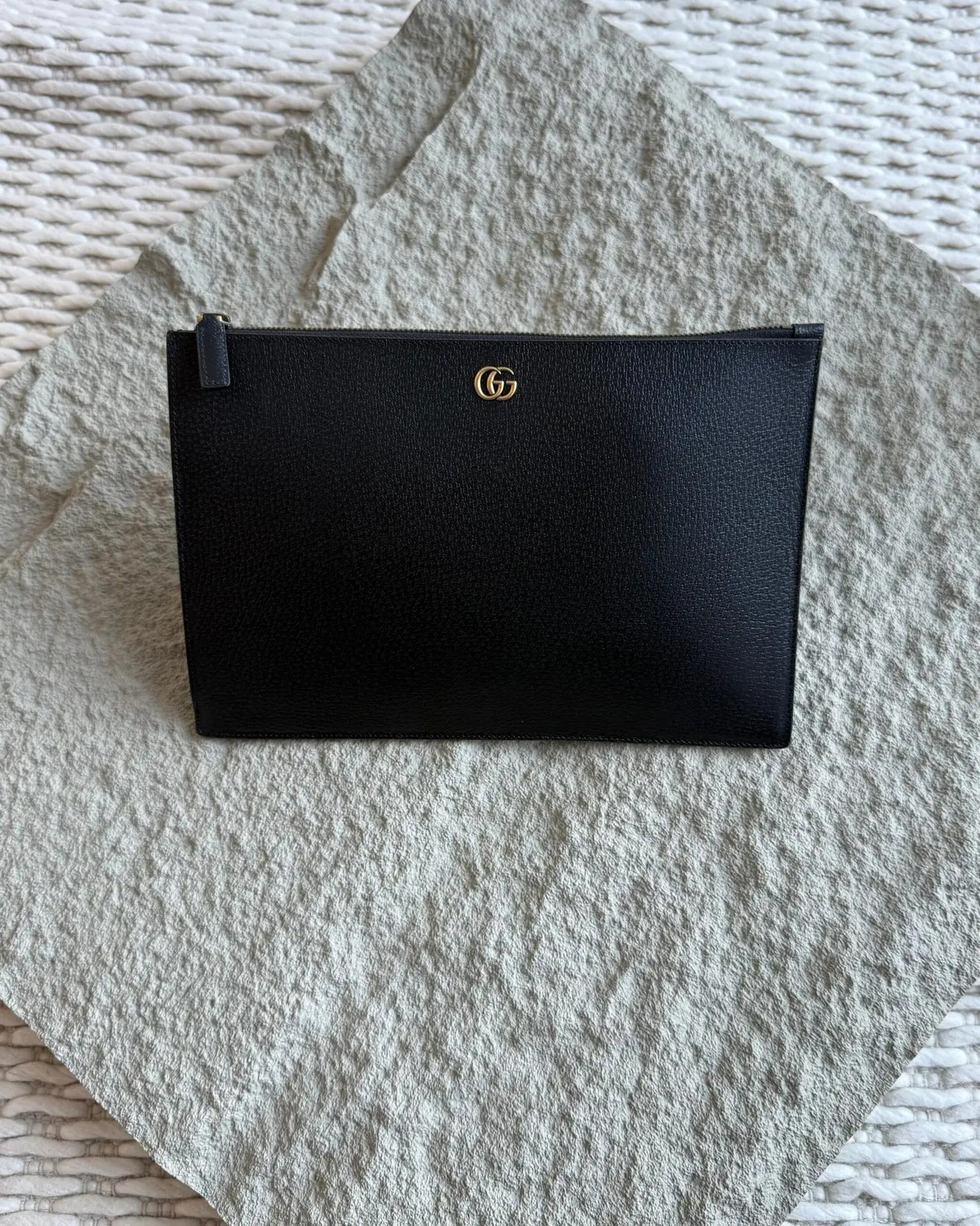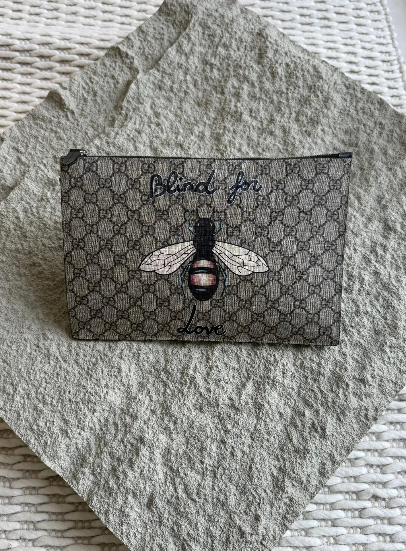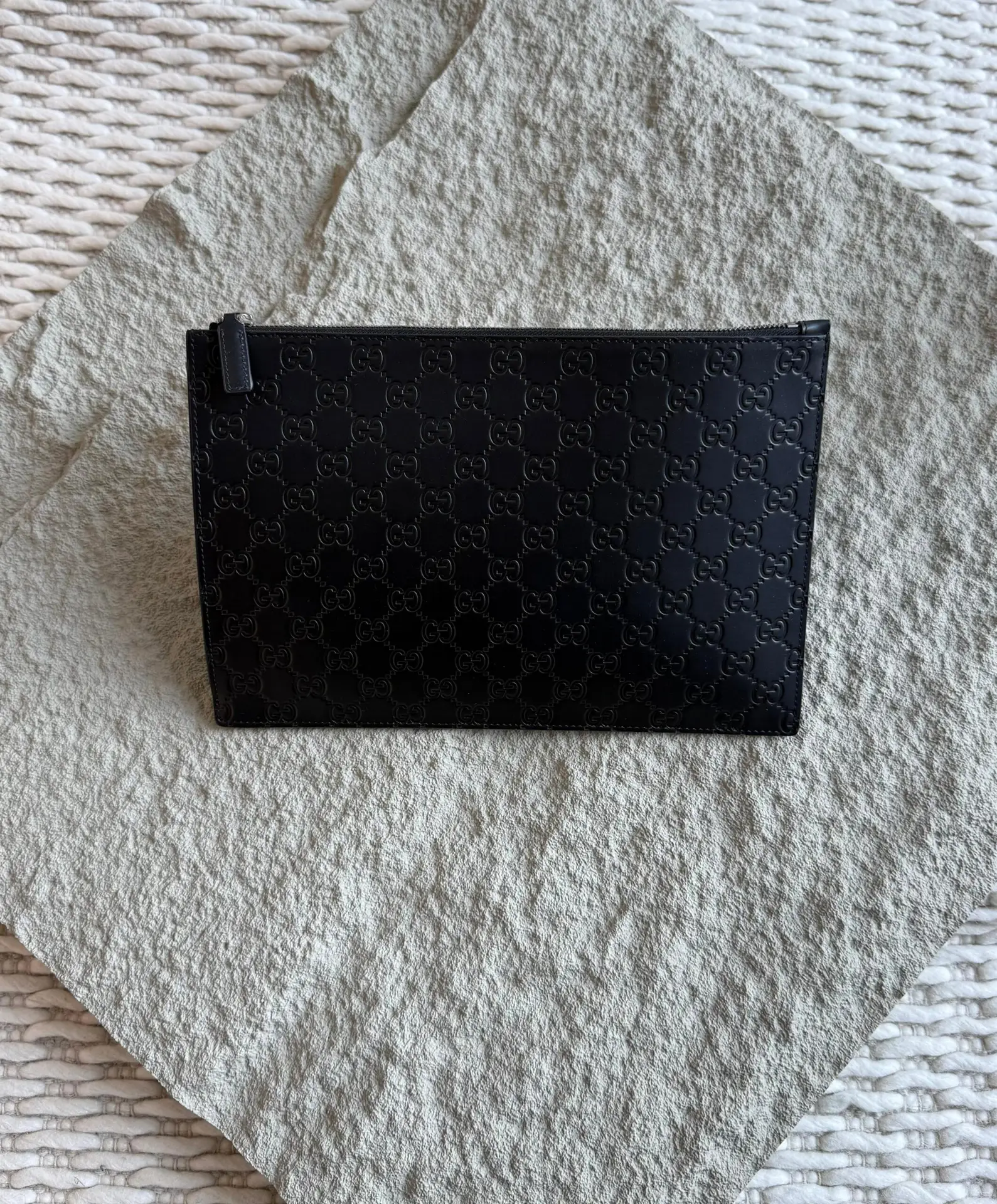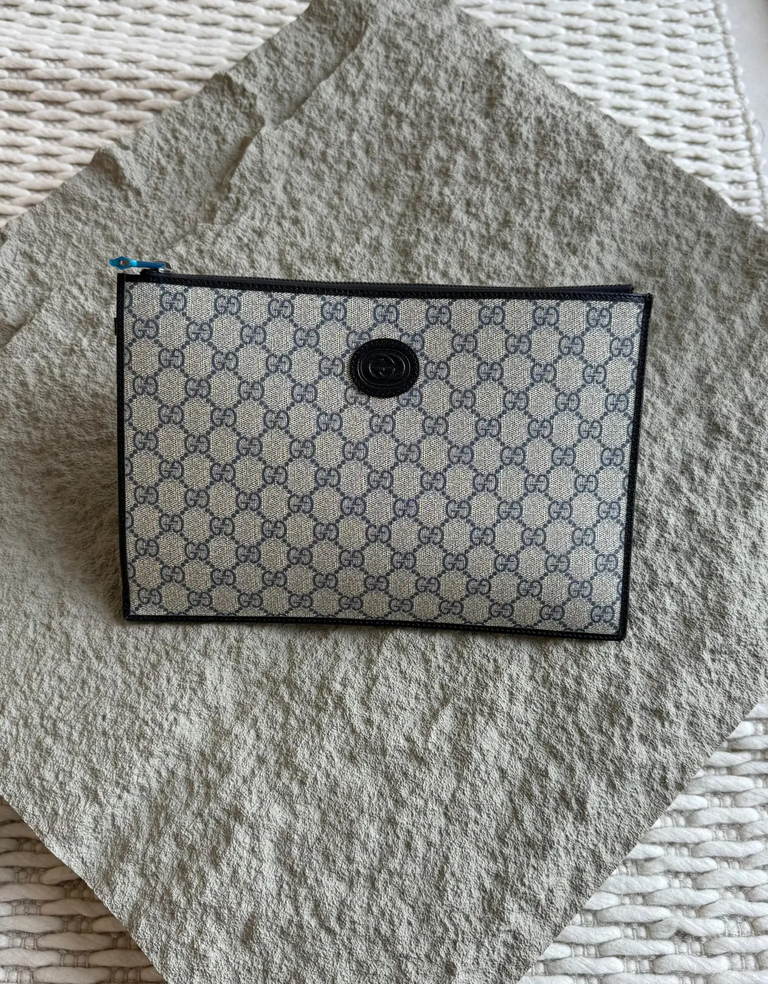 The Gucci GG Supreme Pouch Bag is a contemporary classic, crafted from the brand’s signature GG Supreme coated canvas with refined leather trim. This versatile pouch blends retro charm with modern utility, making it the perfect accessory for both casual and elevated looks.