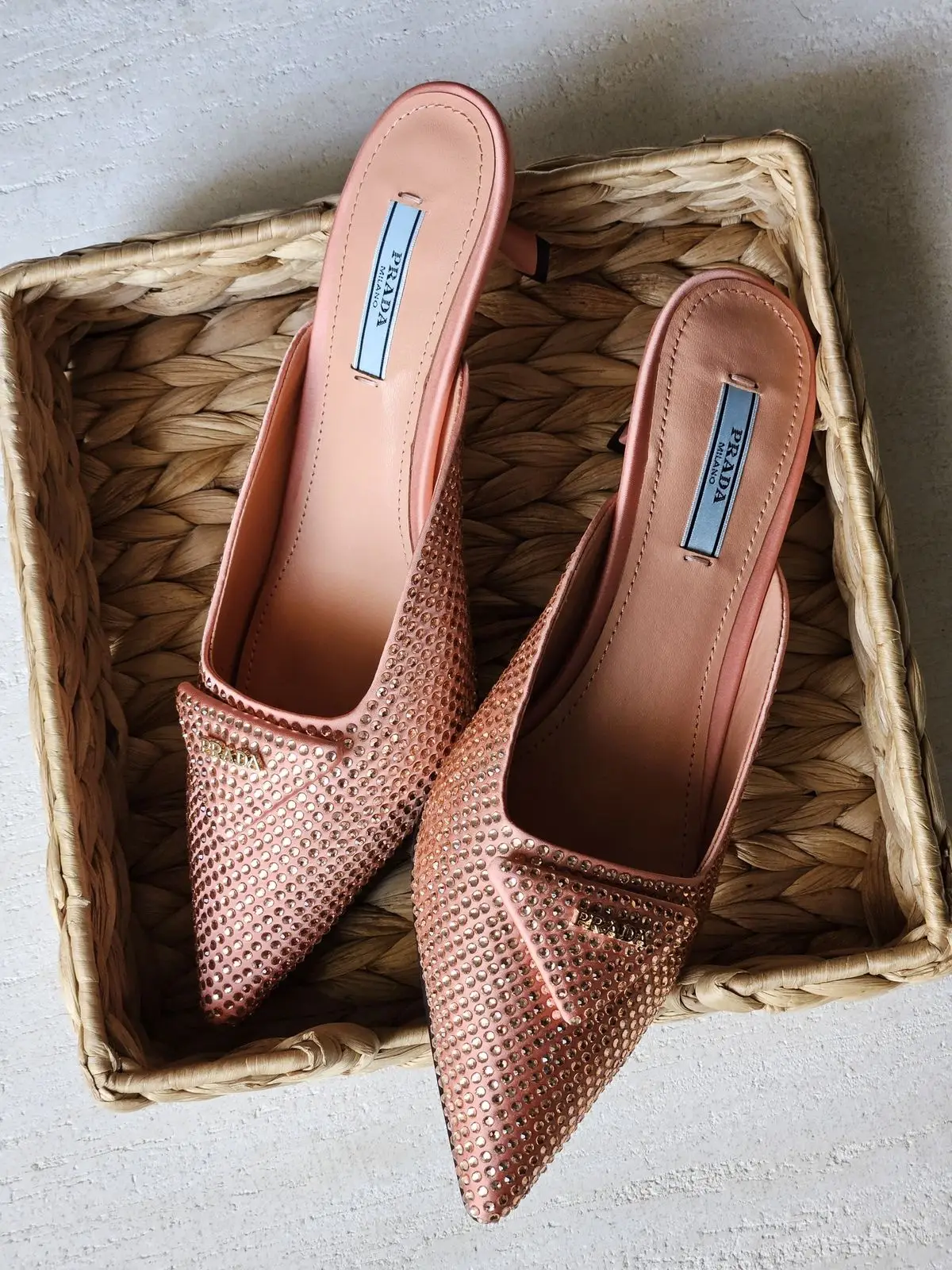 Step into elegance with the PRADA Satin High Heel Shoes—a timeless blend of luxury and sophistication. Crafted from premium satin, these heels exude opulence with a sleek, glossy finish. The slender stiletto heel and pointed toe elongate the silhouette, while the iconic PRADA logo adds a touch of haute couture. Perfect for red-carpet events, weddings, or upscale soirées, these heels offer unmatched style and confidence. The cushioned insole ensures comfort, making every step as graceful as it is glamorous.