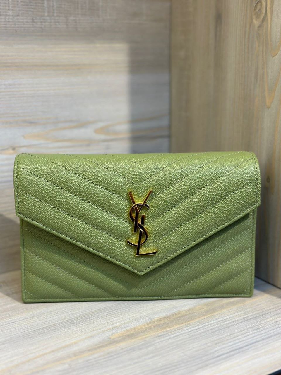 Elevate your style with the SAINT LAURENT Monogram Chain Wallet, a perfect fusion of luxury and functionality. Crafted with super master quality, this exquisite wallet features the iconic monogram pattern, a sleek chain strap, and premium materials for a sophisticated look. The compact yet spacious design includes multiple card slots, a bill compartment, and a secure zip closure. Whether for a night out or daily use, this wallet adds a touch of high-end fashion to any ensemble.