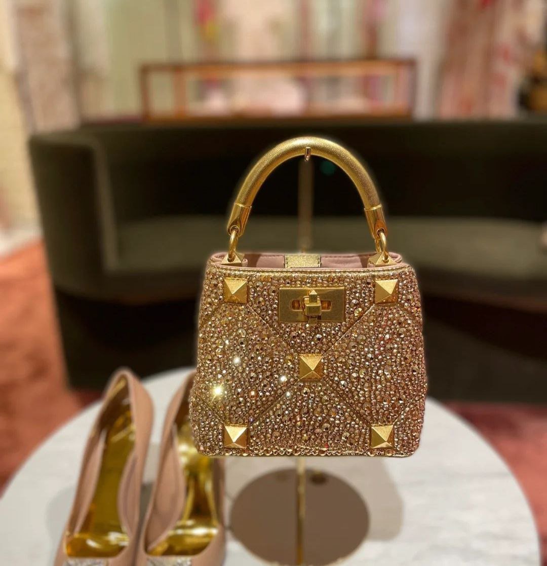 The Valentino Garavani Roman Stud Shoulder Bag combines luxury and edge with gold-tone studs, premium leather, and versatile styling. A must-have for fashion connoisseurs.